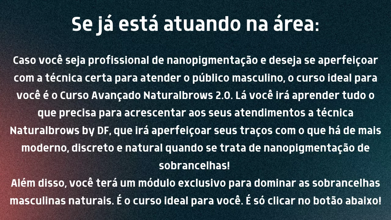 Mesmo que esteja começando agora, você pode se tornar referência em sobrancelhas masculinas naturais e ter a agenda cheia com um serviço exclusivo e valorizado, desde que faça a técnica certa!